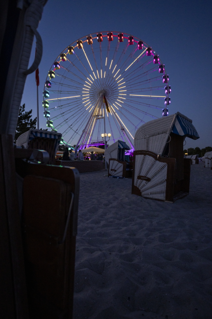 Mit seinen auffälligen 50 Metern ist das La Noria Riesenrad in Grömitz schon von Weitem sichtbar und prägt die Promenade als echtes Highlight. Entlang der gesamten Küste zieht es die Blicke auf sich und lädt zu einem besonderen Erlebnis ein.